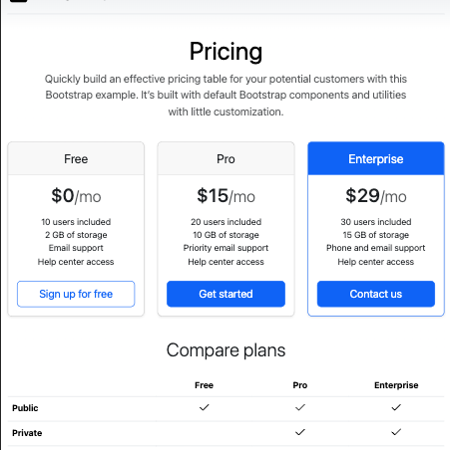 An example of a typical pricing page.